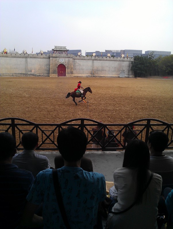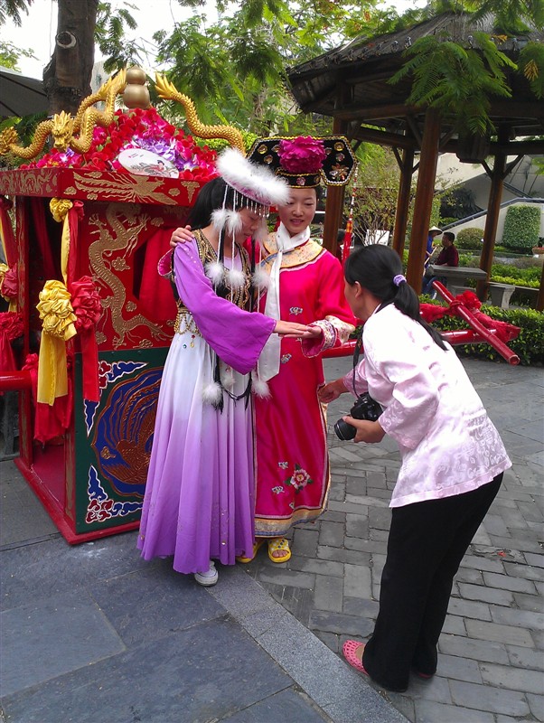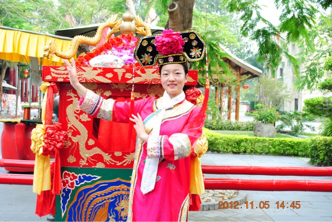 世界之窗通過微縮景觀讓我們大開眼界,不僅有世界各地的標志性建筑而且融合了多姿多彩的西方文化特色和風情。我們在這門口拍了張照,便奔到了錦繡中華。園內(nèi)充分展示了中華五千年的文化,其博大精深讓我們嘆為觀止。大街上有粉墨登場的踩著高蹺高調(diào)游行的小丑,街邊有轉(zhuǎn)動的水車,有擺著冰糖葫蘆,還有各種有意思的面具和頗具時代感的工藝品。出于對藝術(shù)家的尊重,我買了兩個用銅絲線做成的小腳踏車。其中各種各樣的表演,精彩紛呈。最具代表性的有兩個,露天上演的《金戈戰(zhàn)馬》和室內(nèi)演出的《中國印象》。在跑馬場上,以古代城樓為實景,一群英姿颯爽的跑馬溜溜的漢子英勇無敵,策馬奔騰,飛馳原野。除了情景演義還有各種馬上特技表演。如馬上飛馳交鋒,雙人夾擊交戰(zhàn),側(cè)身飛馬撿哈達,飛馬穿越火線,等驚險而刺激。整場氣勢震撼人心,仿佛走到了那戰(zhàn)火紛飛的年月。《中國印象》則以中國服飾文化為主題,是一場唯美的視覺盛宴。舞臺上的美女有著高挑苗條的身段,散發(fā)著東方女性特有的氣質(zhì),他們無不阿羅多姿,風情萬種,將中國古代各段時期不同地域還有頗具韻味的少數(shù)民族服飾詮釋的淋漓盡致;蚩蓯矍纹ぃ騼(yōu)雅高貴,或清新亮麗,或妖冶如火。有著西域的神秘色彩,又有著江南的溫柔小情調(diào),更有著皇宮的雍容華貴。性感有如勾人魂魄,動感則讓人聞歌起舞。每一個造型都刻著豐富的文化內(nèi)涵,它代表的是人們對時代的認同感,對人性的理解,和對審美的更高追求。